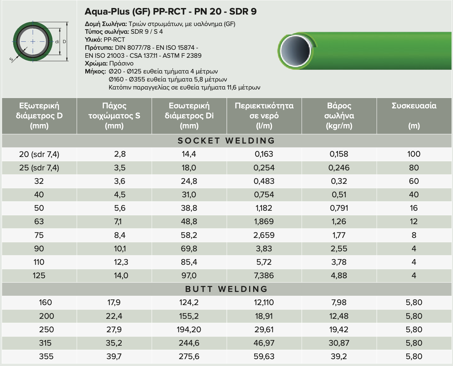 - Περισσότερη ποσότητα μεταφερόμενου νερού και καλύτερες πτώσεις πίεσης σε σχέση με το SDR 6 + 7,4.