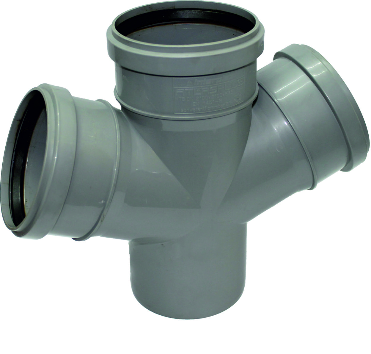 Τα εξαρτήματα ATLAS-PLUS περιλαμβάνουν μια ευρεία γκάμα καμπυλών (15o, 30o, 45o, 67o, 80o, 87o), απλών ημιτάφ (45o, 67o-30’, 87o-30’), συστολικών ημιτάφ (45o, 67o-30’, 87o-30’), διατάξεις Ψ (67o-30’), συστολικά Ψ (67o-30’), εξαρτήματα ελέγχου ροής, απλές μούφες, μούφες με τερματικό, συστολές, έκκεντρες συστολές, γωνιακά ρακόρ μπανιέρας με ορειχάλκινο παξιμάδι, τάπες σε διαστάσεις Ø40, Ø50, Ø75, Ø100, Ø110, Ø125 και Ø160.