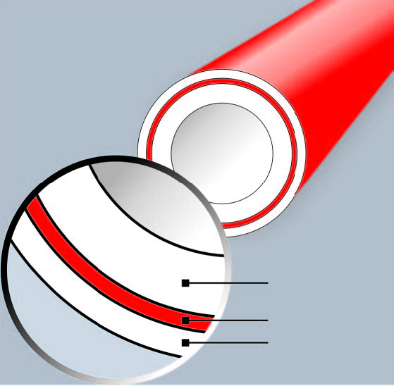 Ο σωλήνας Como-pex Oxygen Barrier αποτελείται από 3 στρώματα: