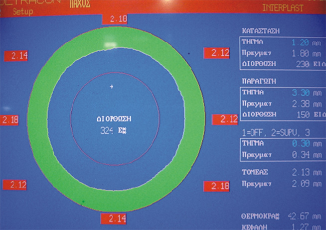 Σύστημα με το οποίο ρυθμίζονται αυτόματα τα επιθυμητά όρια του πάχους τοιχώματος του σωλήνα, μέσω του extruder της γραμμής παραγωγής. Αποτελεί το δεύτερο μέρος διασφάλισης και τήρησης των διαστάσεων του σωλήνα, έχοντας σαν αποτέλεσμα την σωστή εφαρμογή του ορειχάλκινου συνδέσμου στο σωλήνα.