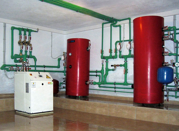 Με τη χρήση κεντρικής τετραόδου βάνας ανάμιξης, πραγματοποιείται η πρώτη ρύθμιση του νερού που τροφοδοτεί ο λέβητας, γύρω στους 50ºC. Ταυτόχρονα επιτυγχάνεται και η προστασία του λέβητα από επιστρεφόμενα νερά χαμηλής θερμοκρασίας.