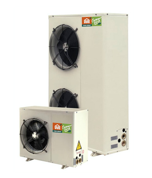 Πηγή Ενέργειας η αντλία θερμότητας αέρος-νερού, που το καλοκαίρι απορροφά τη θερμότητα της κατοικίας, μέσω του ενδοδαπέδιου κυκλώματος και την αποβάλλει στο περιβάλλον.
